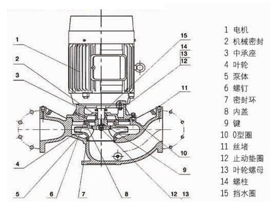 4.裝"0"型圈,把泵體與電機(jī)端蓋用螺栓緊詞。注意使葉輪前蓋板與泵體間隙為2十0.5毫米,葉輪進(jìn)口外圈與泵體保證一定的運(yùn)轉(zhuǎn)間隙。