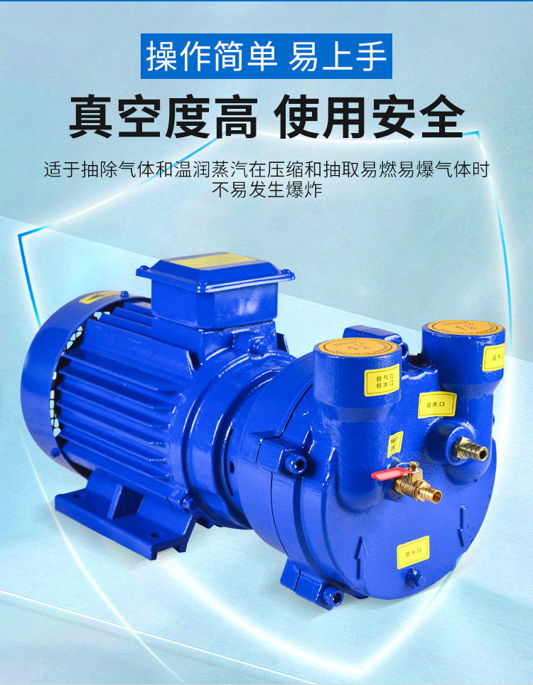 2BV系列水環(huán)真空泵為整體結(jié)構(gòu)—機(jī)泵同軸的單級(jí)泵。軸封采用機(jī)械密封,具有結(jié)構(gòu)簡(jiǎn)單,安裝簡(jiǎn)捷、無(wú)油、安全可靠等特點(diǎn)。