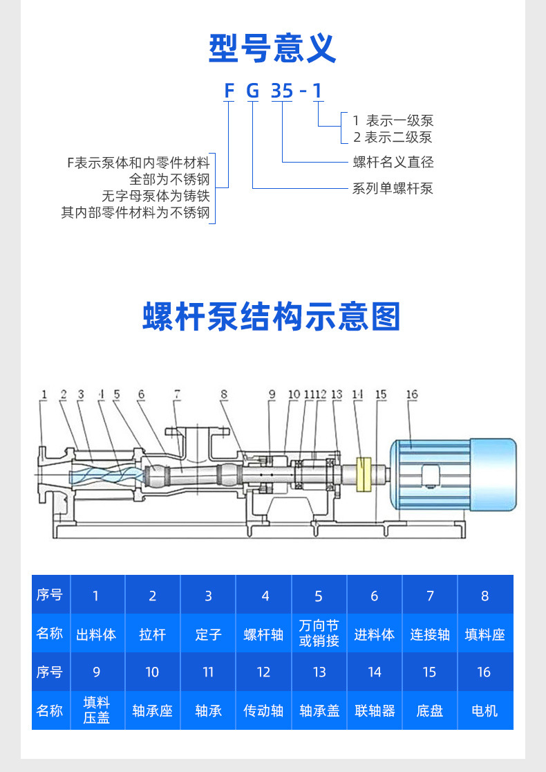 FG型304不銹鋼螺桿泵產(chǎn)品特點(diǎn)說明:
