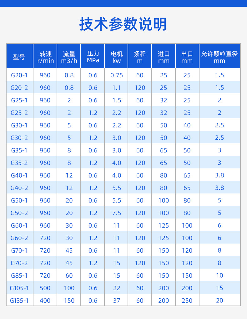 注意事項(xiàng):單螺桿泵的特殊形式:強(qiáng)制喂料螺桿泵,設(shè)有長方形料斗,連桿上設(shè)有螺旋推進(jìn)器,適用于不能自流但含有液體的介質(zhì),輸送類似渣液時,也可裝攪動棒,以防沉淀。當(dāng)渣液濃度較高時,增添能擠壓粉碎的大漏斗,以防堵塞。泵可配各類驅(qū)動器,最適于配三相齒輪減速電機(jī)。