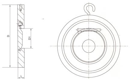 H74H對(duì)夾旋啟式止回閥采用內(nèi)裝搖臂旋啟式結(jié)構(gòu),閥瓣繞轉(zhuǎn)軸作旋轉(zhuǎn)運(yùn)動(dòng),靠介質(zhì)流動(dòng)推開閥瓣介質(zhì)通過,當(dāng)介質(zhì)倒流時(shí),閥瓣靠自身重量以及倒流介質(zhì)的作用,關(guān)閉閥門。